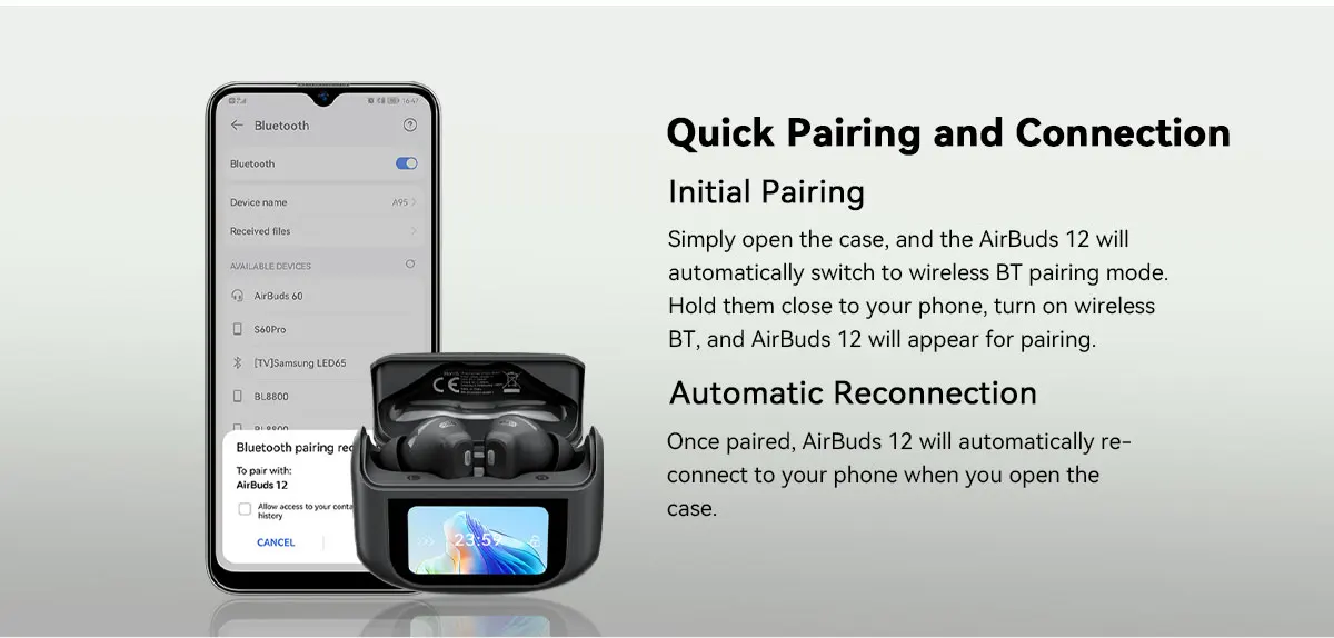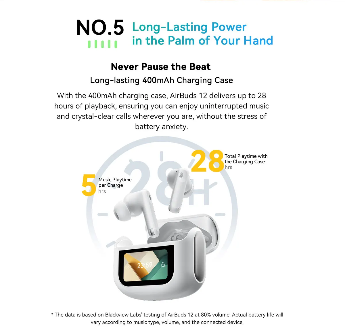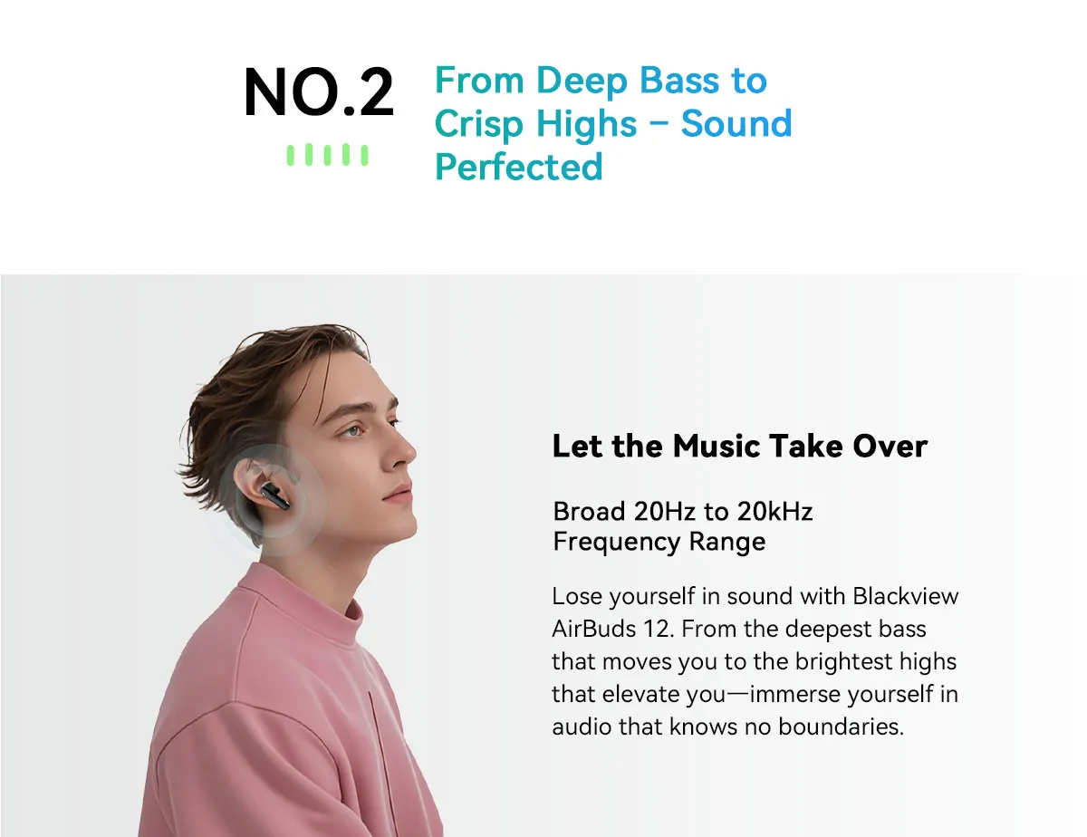 Blackview Airbuds 12 Headset In-Ear Wireless Touch Screen Headphones Sports Air Conduction Bass ENC Earphones 400mAh IPX7