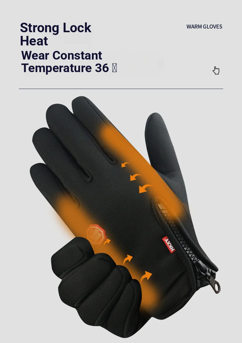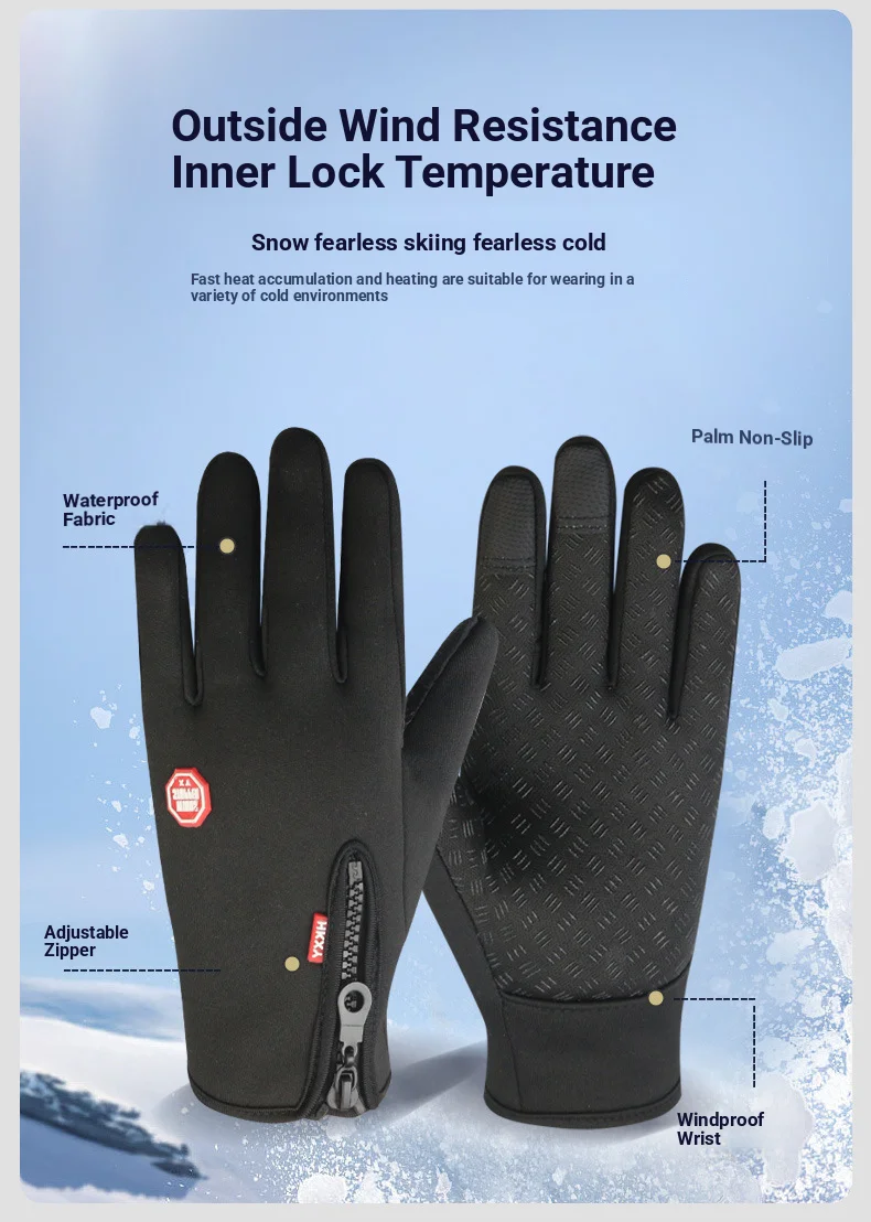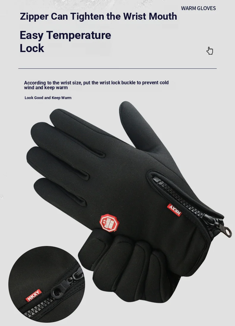Warm Gloves Outdoor Cycling Zipper Gloves Men's Winter Women's Cycling Touchscreen Motorcycle Waterproof Warm Gloves